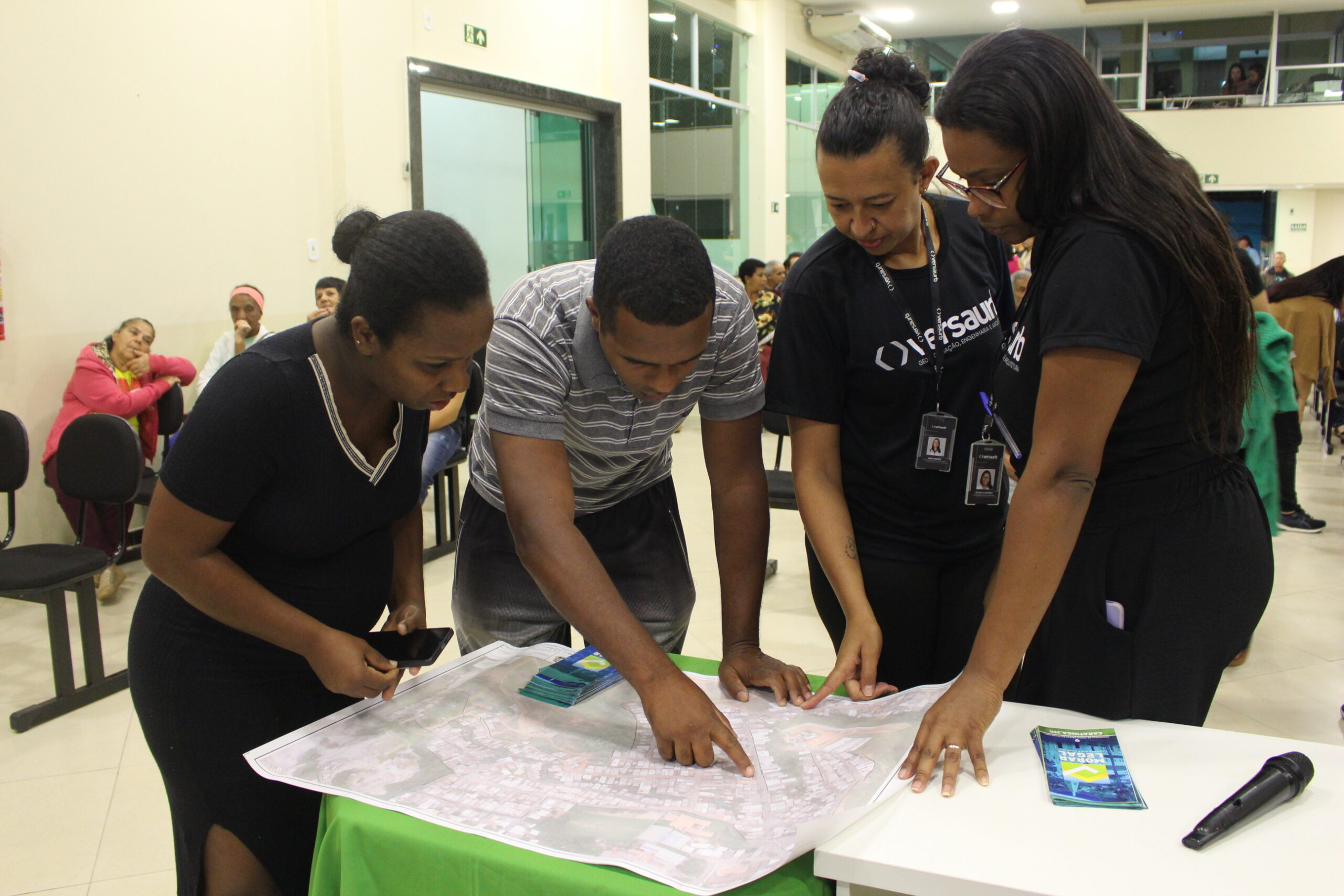 O trabalho social da Versaurb inicia-se na mobilização, quando a equipe estabelece contato com moradores, apresenta o programa, esclarece dúvidas e identifica expectativas da comunidade. Essa aproximação inicial cria um ambiente de diálogo e confiança, reforçando que a regularização fundiária envolve também o reconhecimento das histórias e relações construídas no território.
