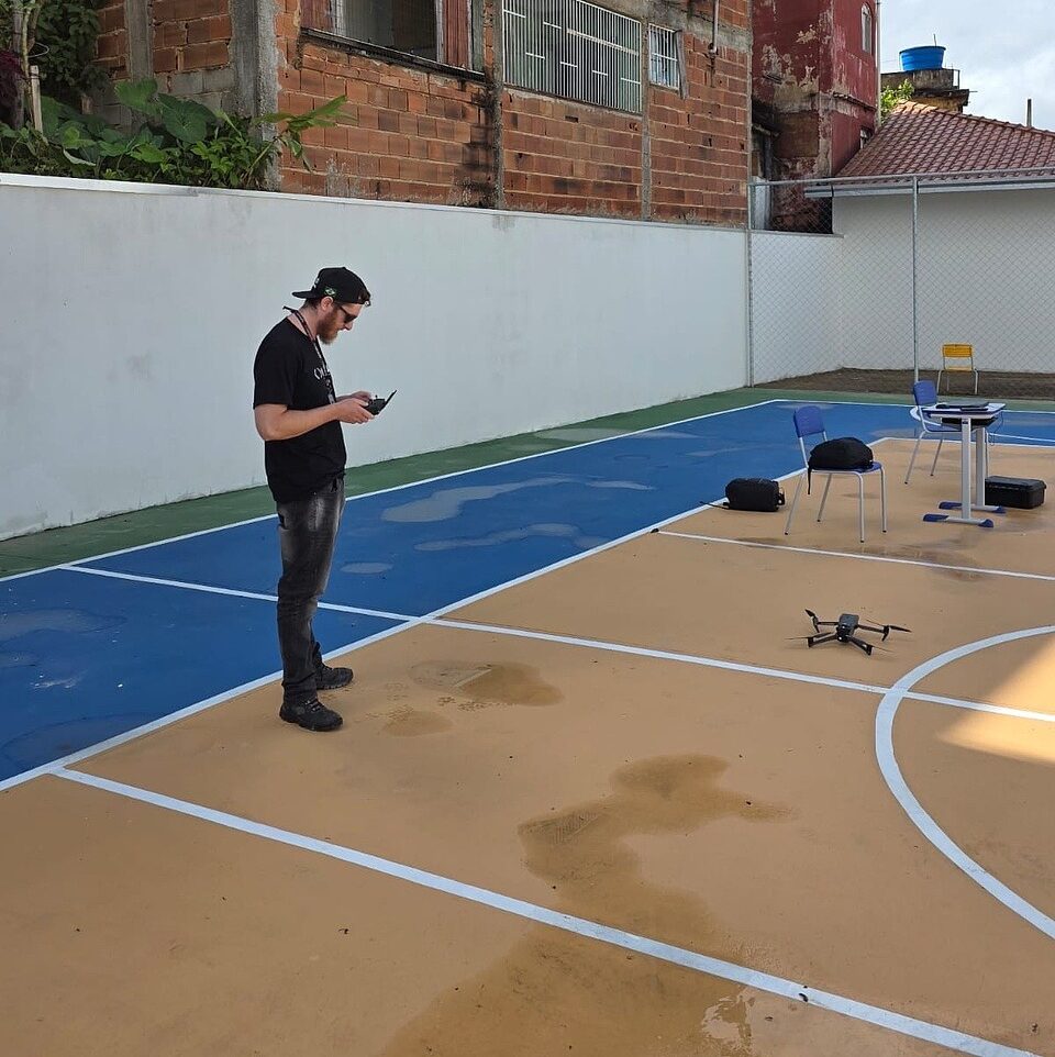 Na primeira fase do trabalho serão feitas centenas de fotos aéreas para gerar uma ortofoto que servirá como base para elaboração da planta de sobreposição do antigo loteamento irregular. Esse equipamento permite identificar todos os lotes com altíssima precisão, mapear vias e cursos d’água, e confrontar a realidade da ocupação com os registros fundiários anteriores. A ortofoto dá segurança jurídica ao processo, garantindo que cada família tenha sua posse registrada de acordo com a realidade, além de subsidiar o planejamento de obras de infraestrutura futuras.