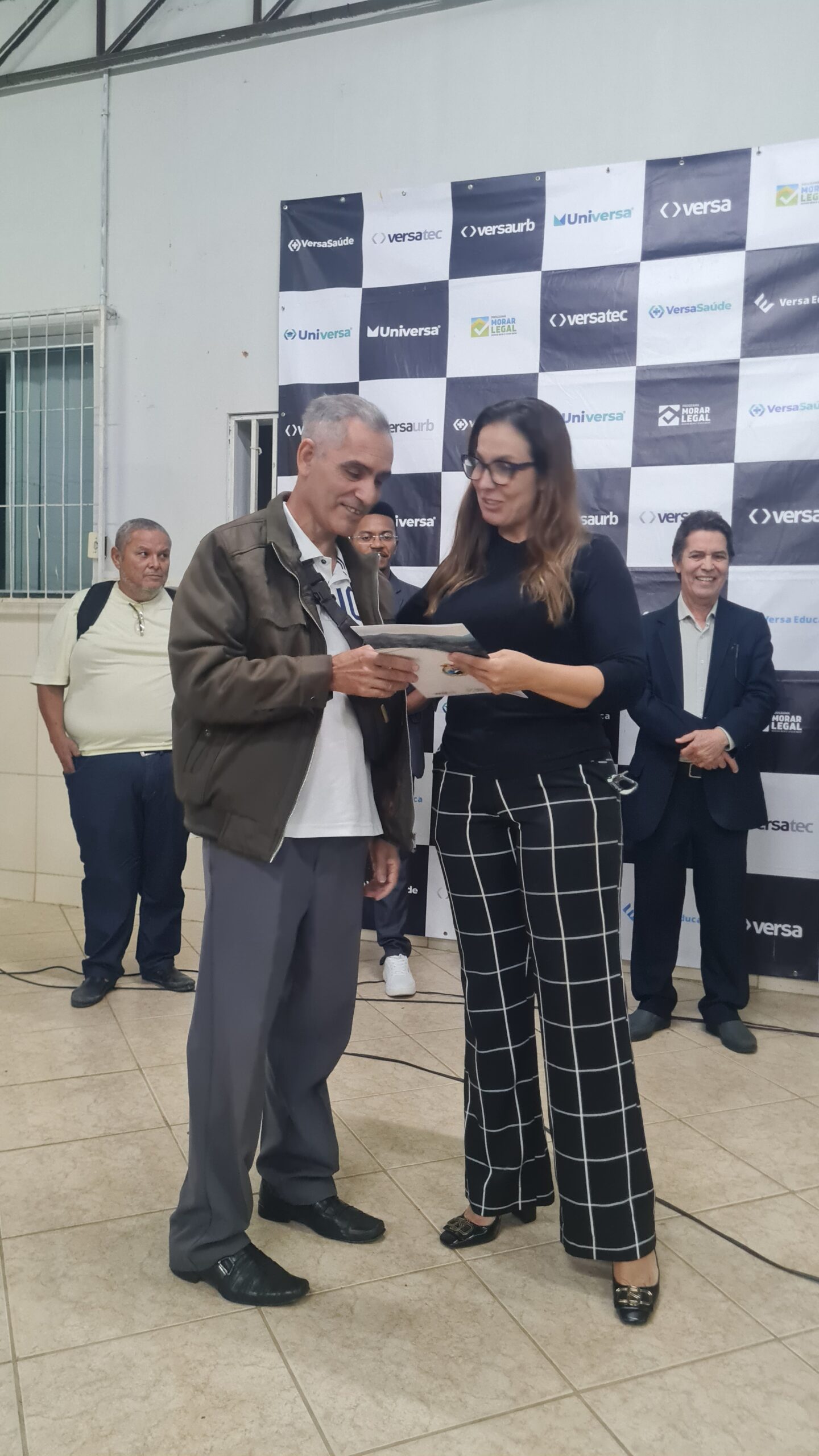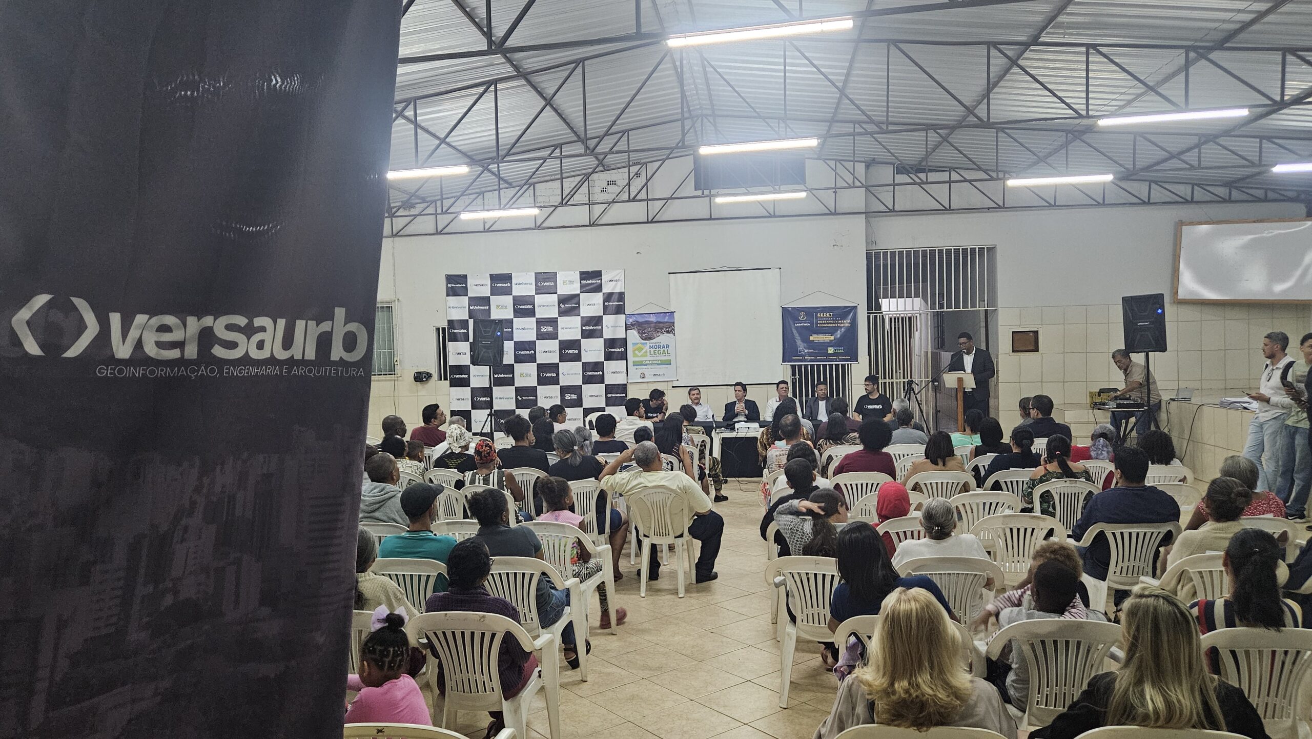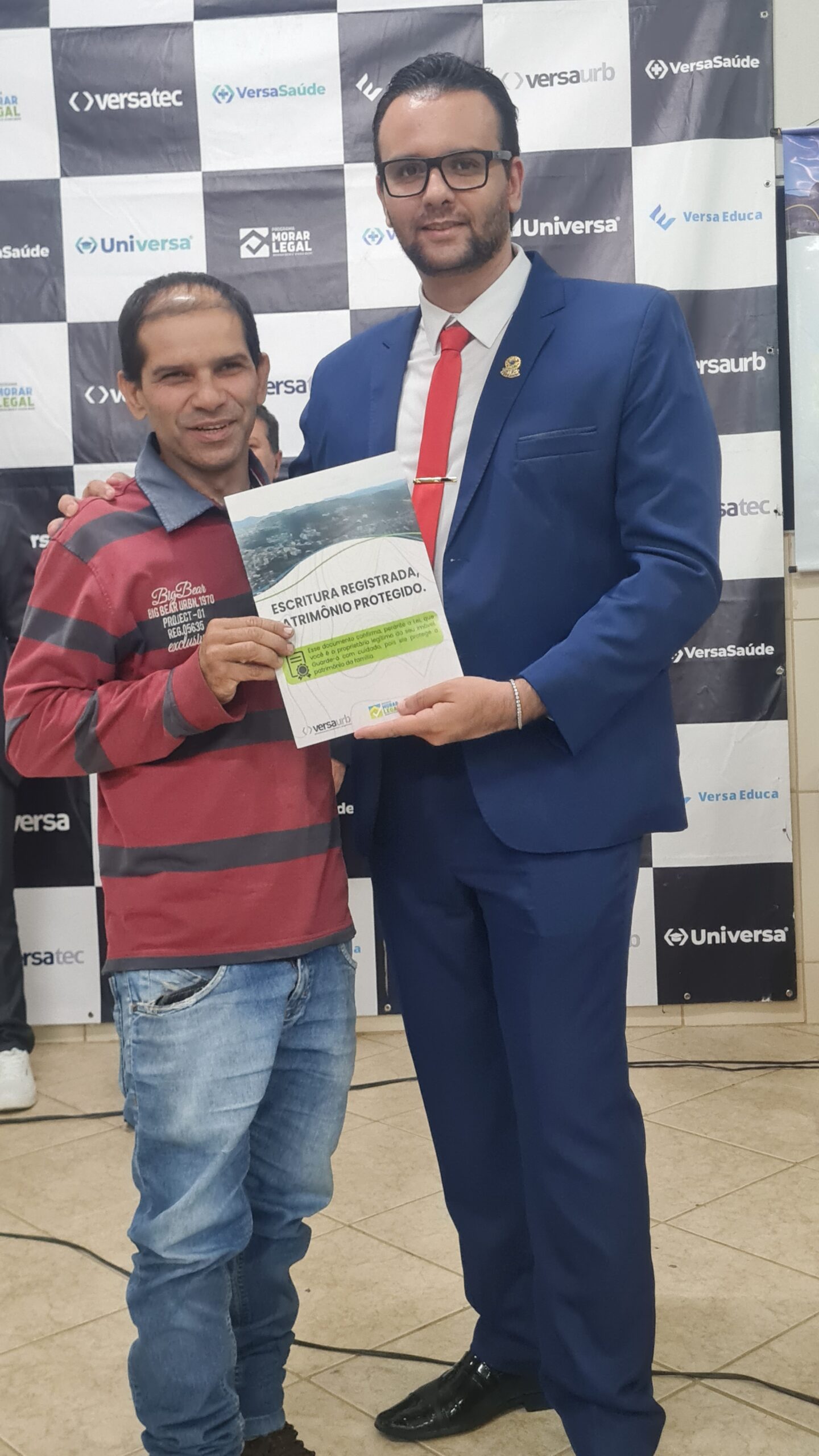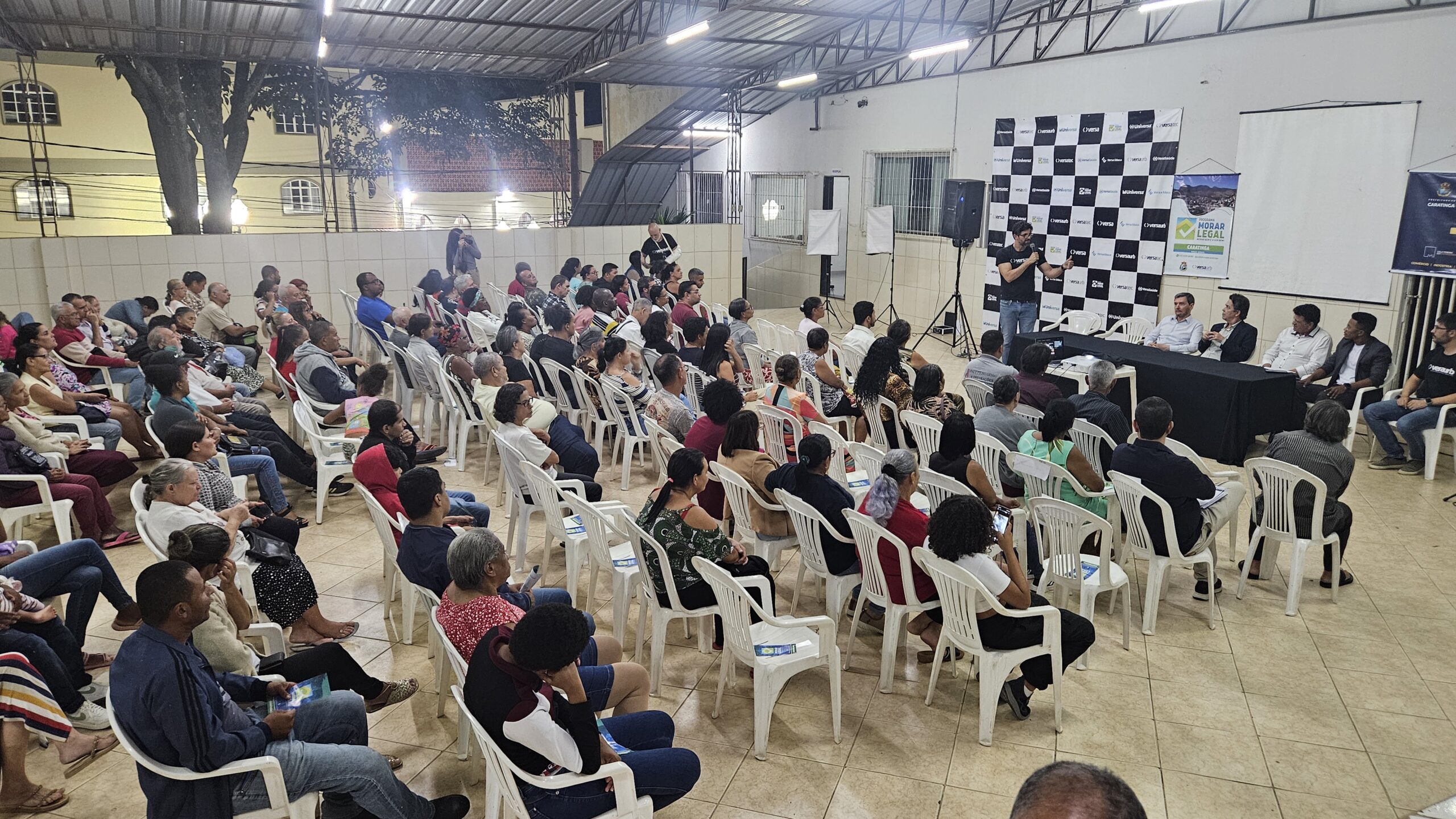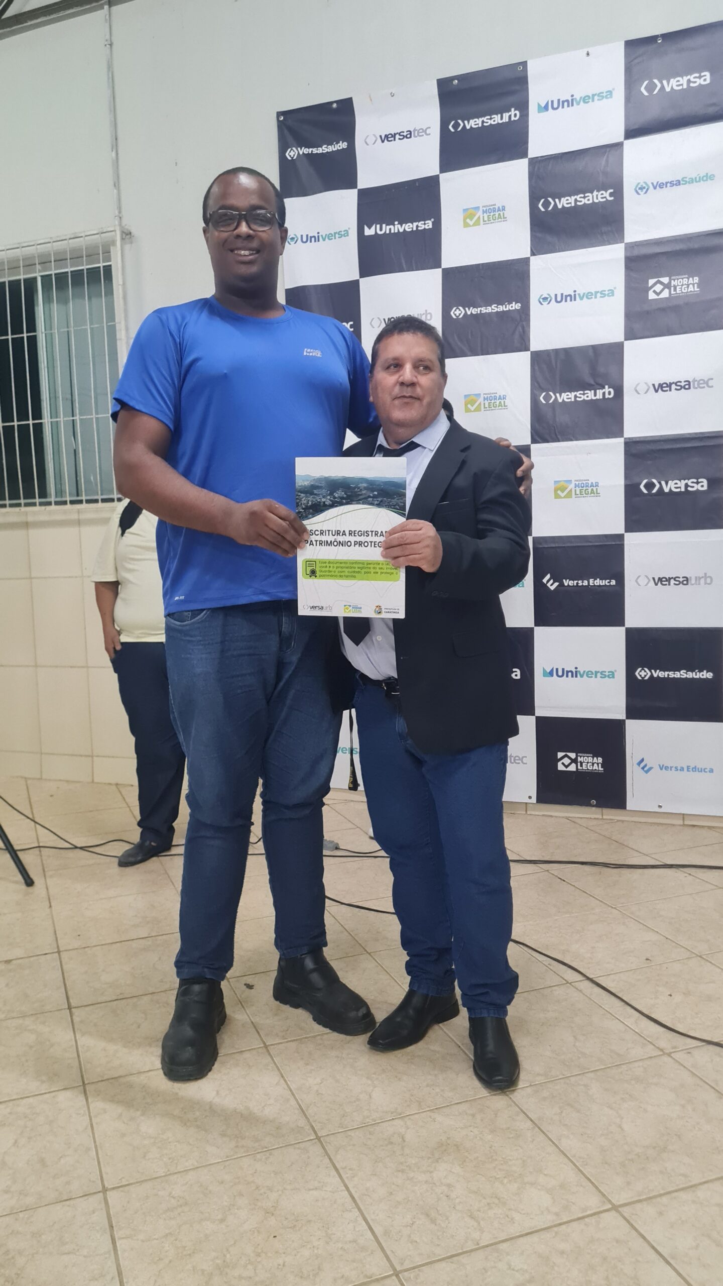 Mais de 100 famílias do bairro Dr. Eduardo receberam as escrituras dos seus lotes registradas em Cartório, sem custo algum. Os títulos de propriedade dos imóveis foram entregues na noite desta segunda-feira (dia 7) pela Prefeitura de Caratinga, em solenidade que lotou o auditório da Fundação Educacional Cidade dos Meninos (Funcime), no bairro Santa Cruz. Até agora, aproximadamente 200 famílias daquela comunidade já foram beneficiadas por meio do programa “Morar Legal”, executado pela empresa Versaurb.