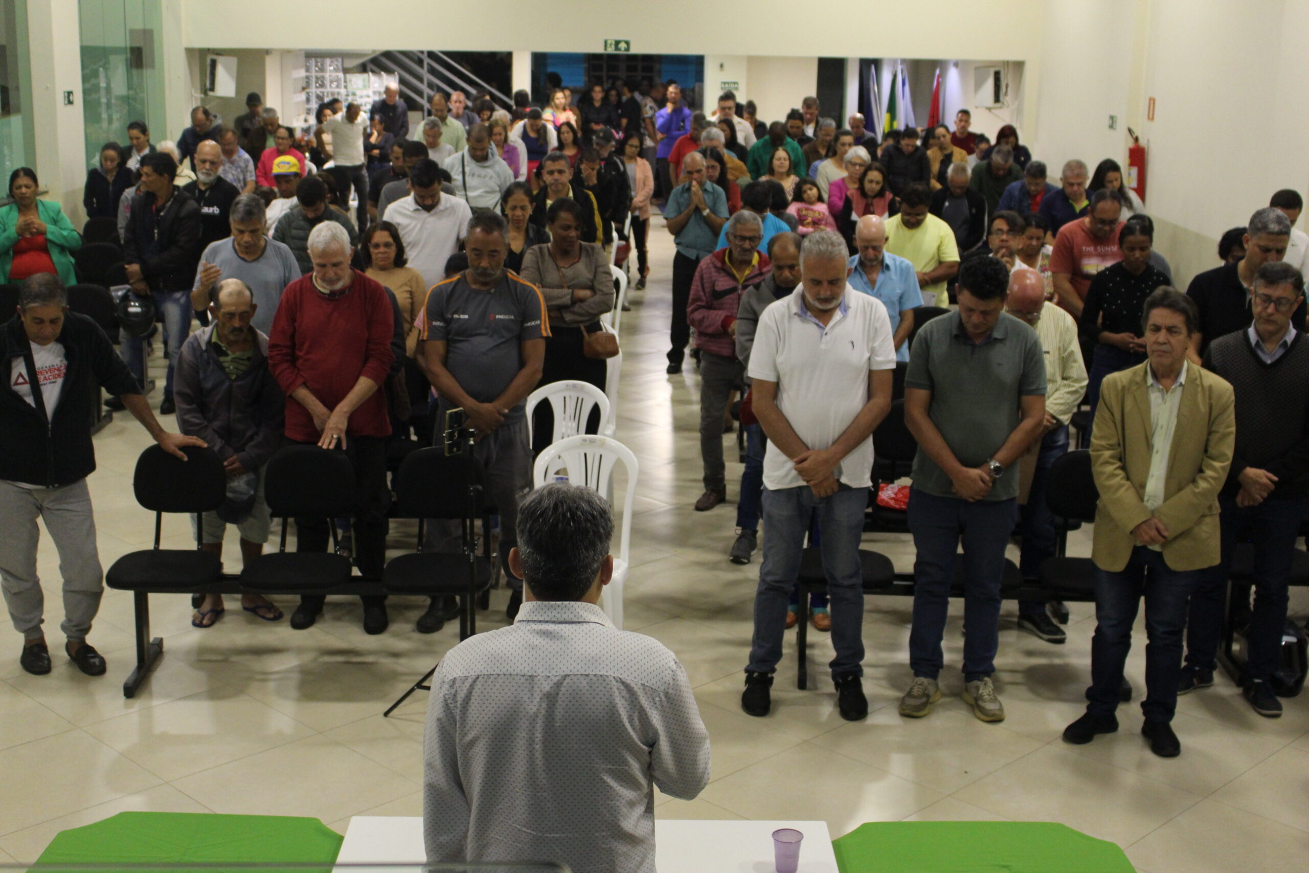 CADASTRO SOCIAL – A reunião com a comunidade do Vale do Sol aconteceu na Igreja El Shaddai, com participação de aproximadamente 300 moradores. Além do prefeito, estiveram presentes os secretários municipais de Desenvolvimento Econômico e Turismo, Odiel de Souza; de Desenvolvimento Social, Manoel Vitor Dornelas; de Fazenda, Márcio Xavier Coelho; e de Obras, Alcides Leite.